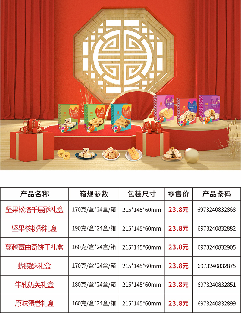 春节的倒计时钟声已经敲响了,意味着回家团聚的日子越来越近,马上就能和家人团圆,好友、同学相聚,一想到这里心情就无比的雀跃;新春佳节,与家人团圆,一家人吃完饭,看电视,唠嗑,与好友相聚,分享一年来的经历,怎么能少了饭后茶点呢;“品佳品年货”用料讲究,口感酥脆,入口香浓,赢得了广泛的赞许;是款待宾客好友,会客品茗必备之选。