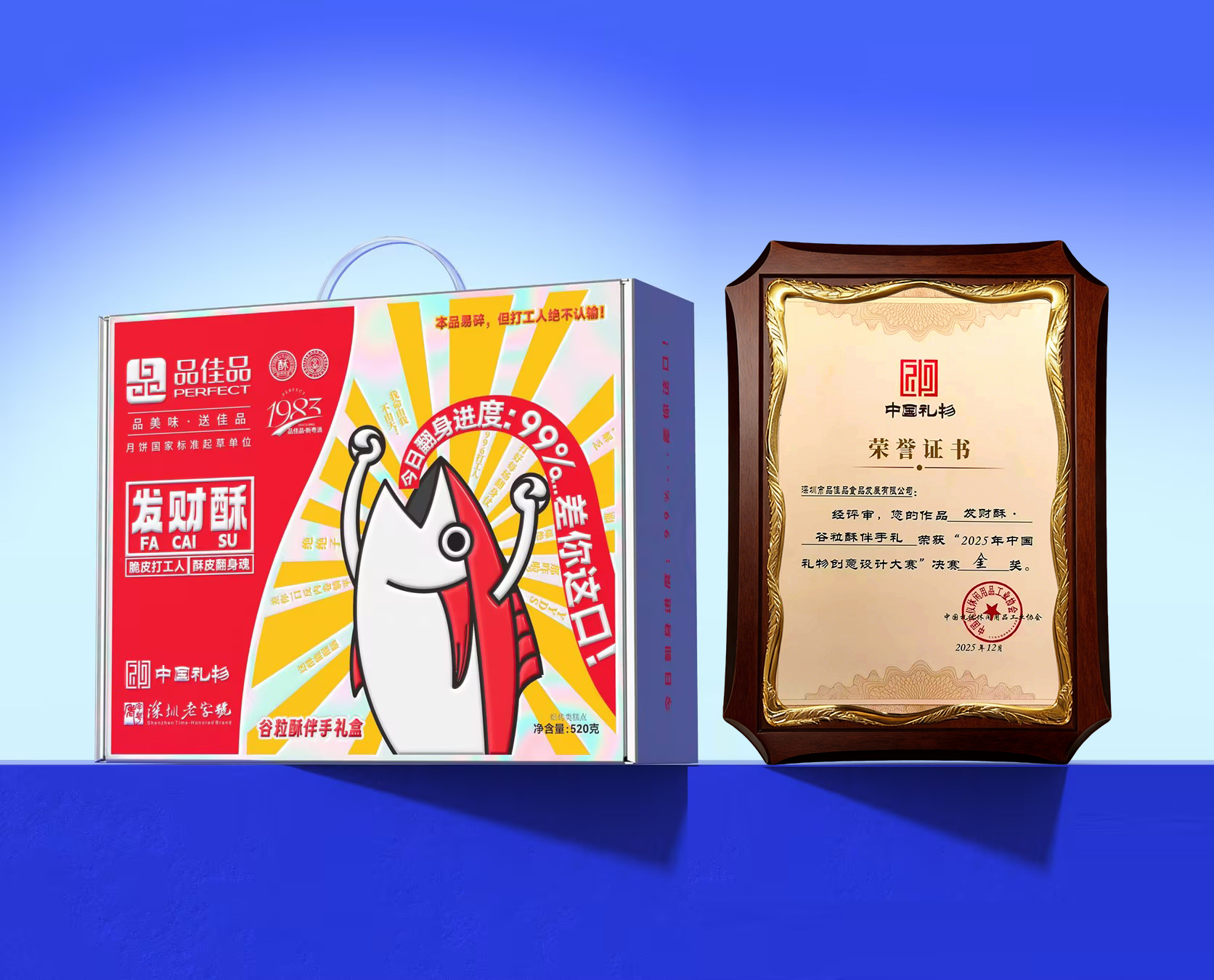 近日深圳市品佳品食品发展有限公司——携两款创意伴手礼盒 ——“发财酥谷粒酥伴手礼盒”“彩虹酥谷粒酥伴手礼盒”正式参赛 2025 年 “中国礼物” 创意设计大赛其发财酥・谷粒酥伴手礼盒凭借鲜明的年轻化创意与产品特色成功斩获大赛决赛金奖颁奖单位:中国礼仪休闲用品工业协会以年轻化、趣味化的年味设计诠释传统品牌的新中式礼物表达此次参赛的两款礼盒均以 “谷粒酥” 为核心产品在包装与内涵上玩出了新花样发财酥礼盒走 “职场趣味风”:以 “脆皮打工人,酥皮变身魂” 为 slogan搭配卡通鱼形形象 +“今日翻身进度 99%” 的趣味文案将年轻人的职场情绪与 “发财” 的新年吉语结合既贴合社交语境,又传递了新春好彩头彩虹酥礼盒主打 “生活仪式感”:包装融入 “下午三点” 的下午茶场景 + 渐变彩虹色调把谷粒酥的 “酥脆美味” 与日常休闲时刻绑定兼顾颜值与场景适配性作为 “月饼国家标准起草单位”“深圳老字号”品佳品此次参赛的礼盒既保留了传统伴手礼的 “年味属性”又通过年轻化的文案、视觉设计适配当代消费者的审美与社交需求 ——520 克的规格兼顾便携性与分享感谷粒酥的酥脆口感也覆盖了年货、日常零嘴等多元场景“中国礼物” 创意设计大赛聚焦“文化 + 创意 + 实用” 的礼物属性品佳品此次的参赛作品正是传统食品品牌在 “国潮 + 年轻化” 赛道的新尝试:用年轻人喜欢的语言讲好 “中国年味”让伴手礼既是 “美味”也是能传递情绪的 “社交载体”。目前,两款礼盒已同步开启市场预热后续将结合大赛反馈进一步优化产品细节有望成为 2026 年新春的 “网红伴手礼” 之一。