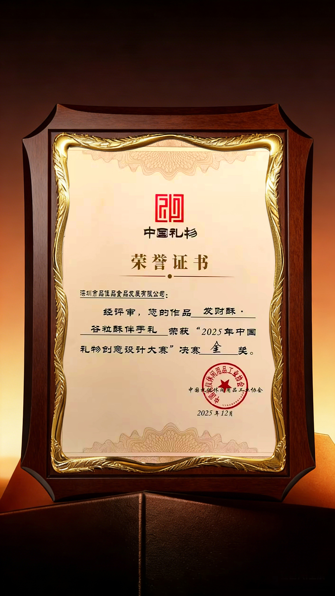 品佳品携 “发财酥 ” 礼盒斩获 2025 “中国礼物” 创意设计大赛金奖